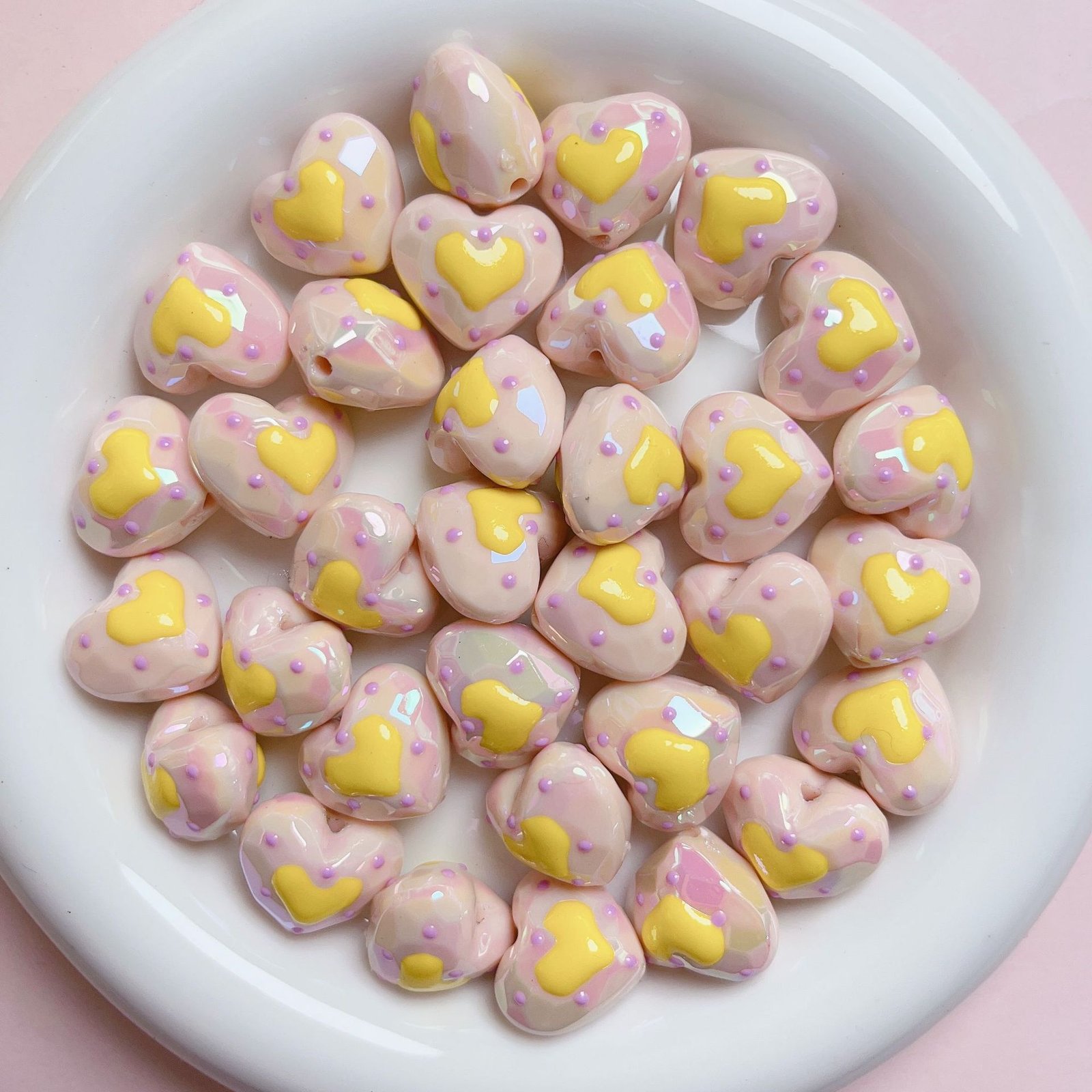 Heart shape acrylic beads DIY handmade materials mobile phone chain keychain bracelet loose beads accessories
